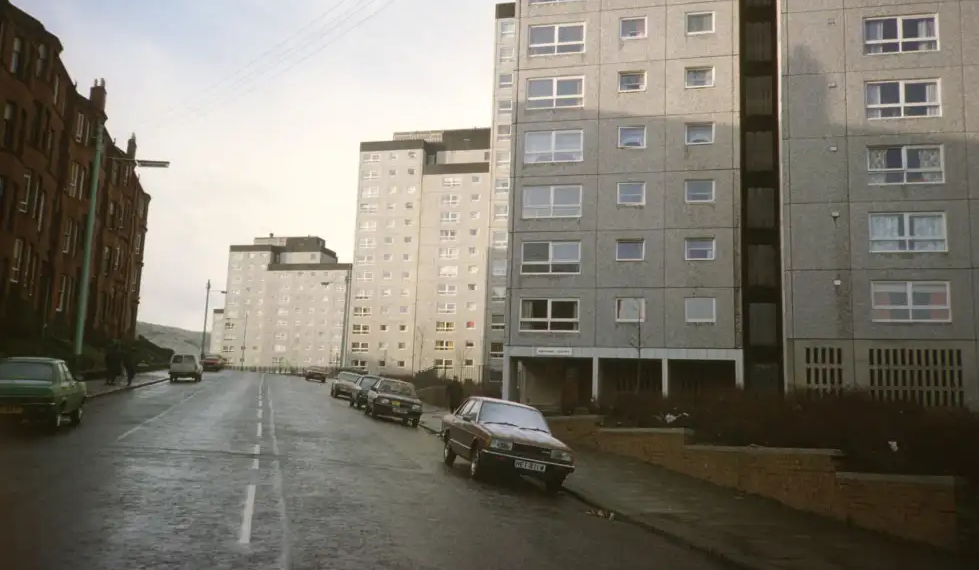 7 High rise blocks ("high flats") are constructed in the east end of Greenock, each one was named after town in a Scottish Borders, Hawick Court, Jedburg Court, Langholm court, Melrose Court, Peebles Court and Sellkirk court.